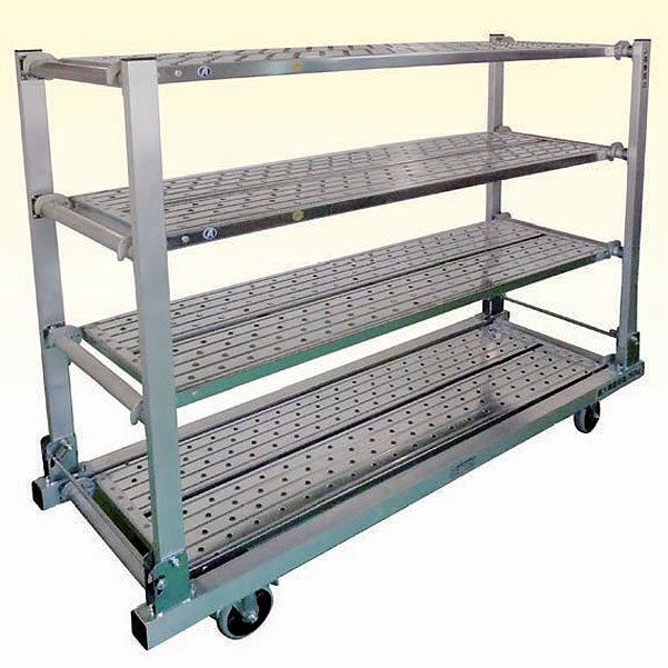 > アルミ軽量簡単組立軽量棚台車(床板1枚棚板3枚付)品番 MB25LKT-1850N4S