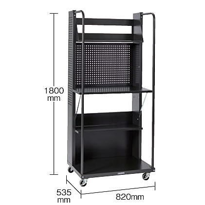 ●取手パイプ付、キャスター付の移動式シェルフで、機械の側でファイル保管や工具収納をすることができます。