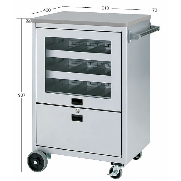 透明アクリル板(3mm厚)付きで、引出し内を外から見える事が出来ます。