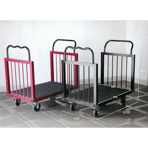 > 両袖ポーター台車(旅館ホテルスーツケース運搬用ブラックゴムキャスター) 品番 M1017WSP-1069BRC