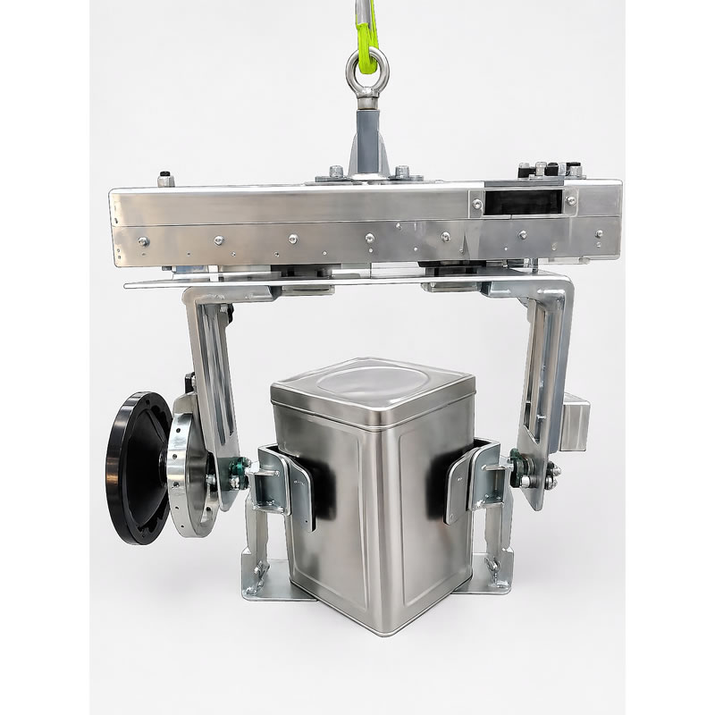 M2245LV-25KGは、一斗缶・ペール缶・ポリ容器を安全かつ確実にクランプし、吊り上げから反転作業までをスムーズに行える専用吊具です。