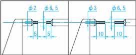 ●スプラインシャフトの溝の径を測定するのに便利なように、両測定面を細くしてあります。