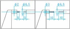 ●スプラインシャフトの溝の径を測定するのに便利なように、両測定面を細くしてあります。
