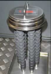 微粒子を含んだ液体は本体入口から入り、6つの強度な磁気力コアに送られ吸着されます。