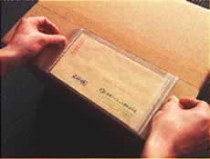 封入時は前面入口のオープンタイプで伝票が入れ易く、またワンタッチで貼り付けが可能なため、作業時間・手間が大幅に改善されます。