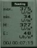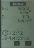 太陽光発電や太陽電池等の熱設備のテストまたはメンテナンスのための放射照度と時間当たり放射量を測定します。