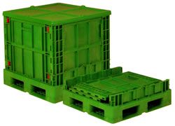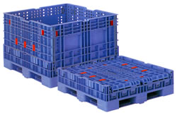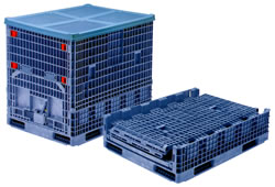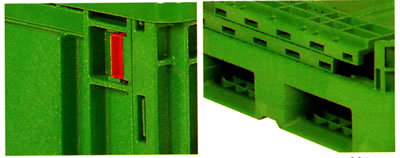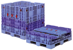 ●従来、鉄製が主流であった大型部品用の通い箱をプラスチック化。鉄製に比べ軽量で取り回しが楽に行え、トラックでの輸送効率もアップします。