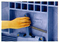 | スライドロック方式を採用。短側面に4つずつ設置。 | 差込口上部はダブルウォール構造で破損しにくくなっています。 |