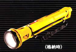 ■特長 ●明るさ2,000ルーメンを実現 ●最長15時間の連続照明可能 ●伸縮自在ロッド固定装置付き ●バッテリー残量警報付き ●防水ゴム製スイッチ