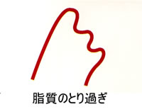| 脂質のとり過ぎに注意し、適度な運動をするも大切 | 広がった血管が多く見られる。代謝に問題があるので、食事の量と質の改善、適度な運動も必要 |