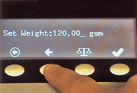 あらかじめ10種類の紙に対応した検量線が入力されています。紙タイプを選択し、秤量を入力するだけで簡単に測定