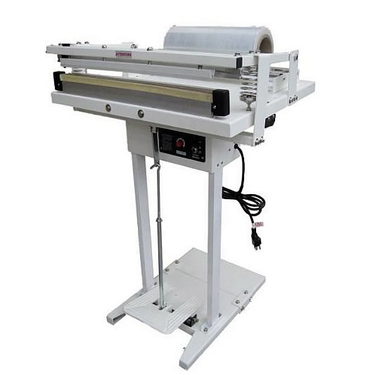チューブ状フィルムのシールや製袋加工できるスライドカッターが付属した足踏式シーラーです。