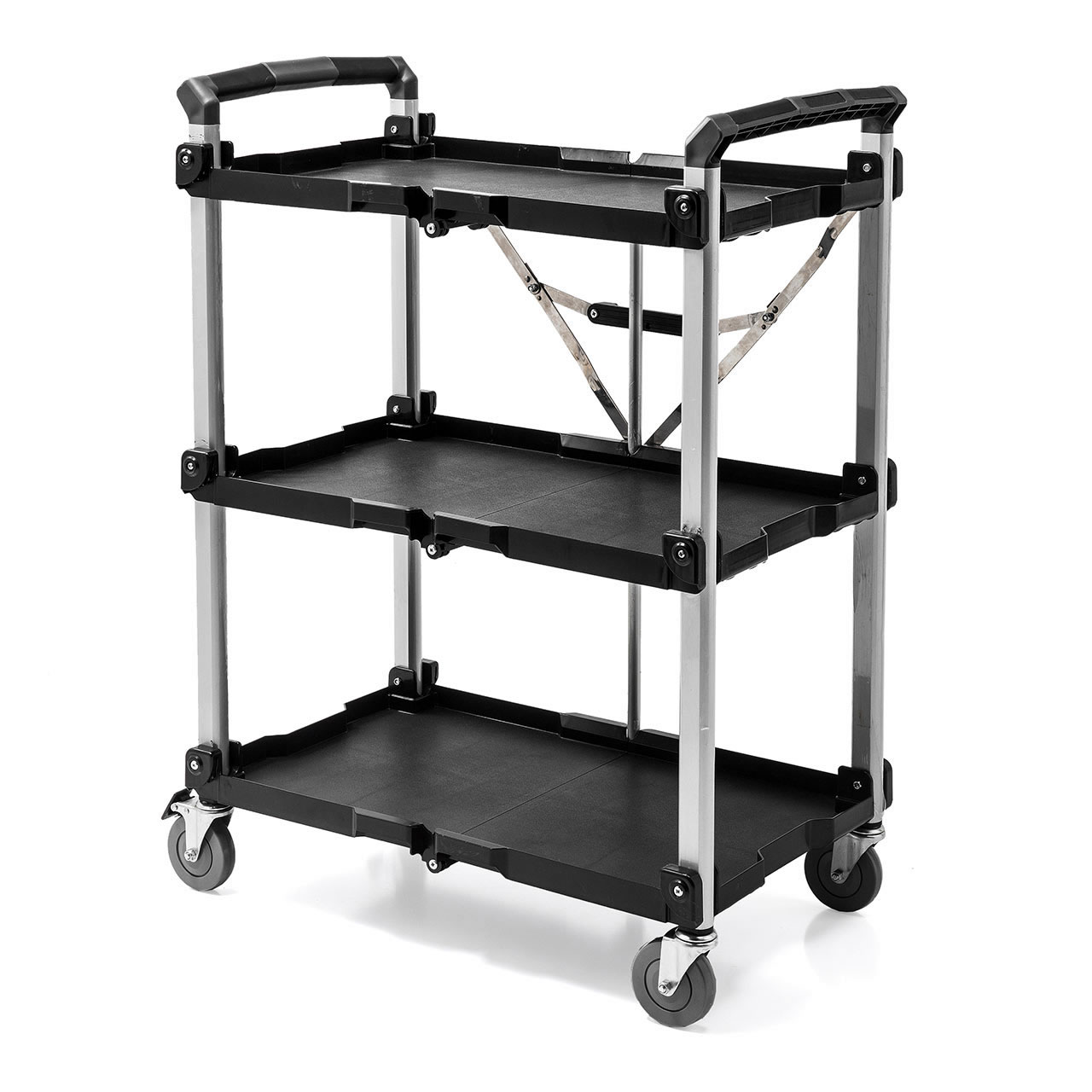 折りたたみツールワゴン キャスター付き 大型 軽量・高耐荷重 3段 ブラック