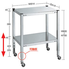 > フラット型ステンレスワゴン高さ調整タイプ(614×414×700~900)ゴム車/品番 M350FW4-F10A