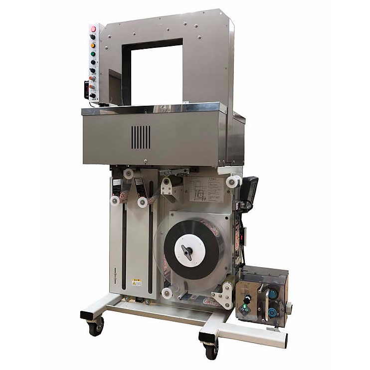 印刷テープ位置決め機能、サーマルプリンタを搭載した自動帯束機。