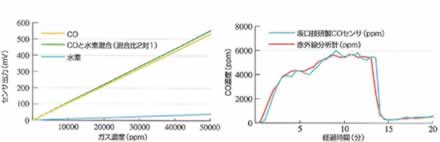 | 高濃度CO測定器 感度比較 | 赤外線分析計と高濃度CO測定器精度比較 |