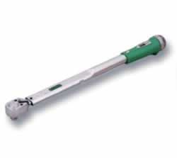 ボルト・ナット類の締付け専用のトルクレンチです。トルク能力範囲のトルク値の中から希望するトルク値をあらかじめセットするトルクレンチです。ホールド機構付のため一度ソケットを取付けると外れて落ちにくい便利さと作業性の良さを持つプッシュボタンでワンタッチ操作が可能です。メカニカル機構のデジタル表示は、数値が直接設定トルク値となり設定ミスが激減します。トルク管理が容易で設定数値を確認するだけで、従来の主目盛・副目盛を読み取る必要がありません。あらかじめ設定したトルク値に達しますと「カチッ」という音、または手に軽い