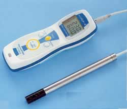静電容量型湿度センサを採用したハンディタイプの温湿度計。