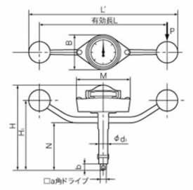 | 品番 | トルク測定範囲 | 寸法(mm) | 質量 | 最大トルク時 の手力P[N] |