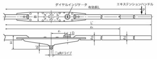 | 最小~最大 | 1目盛 | 有効長 | 全長 | 全幅 | 全高 | 角ドライブ | ||||